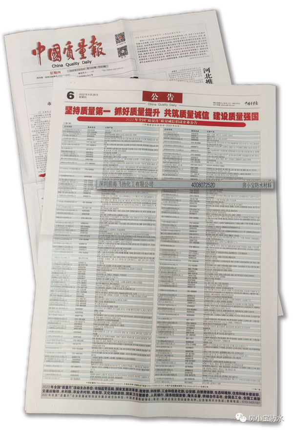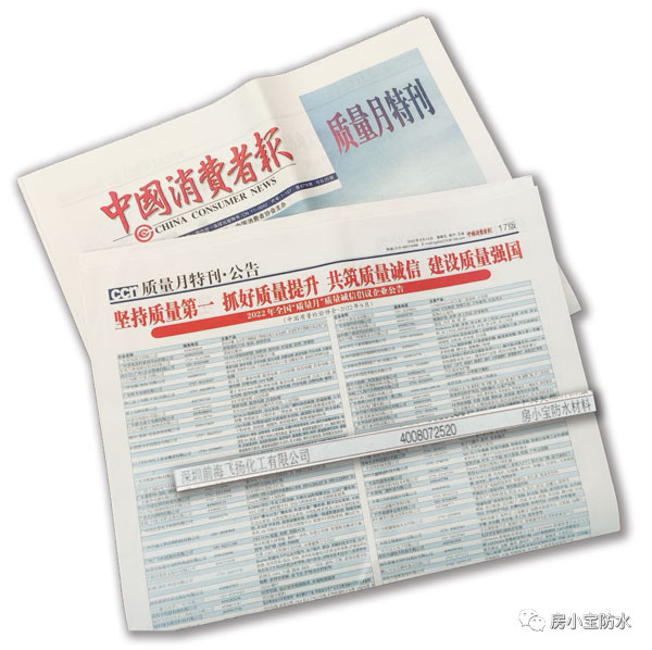 2022年全國“質(zhì)量月”企業(yè)質(zhì)量誠信倡議活動公告一經(jīng)發(fā)布,中國質(zhì)量網(wǎng)、中國消費網(wǎng)、中國經(jīng)濟(jì)網(wǎng)等紛紛報道,房小寶防水以優(yōu)秀的產(chǎn)品品質(zhì)從眾多優(yōu)秀企業(yè)中脫穎而出!