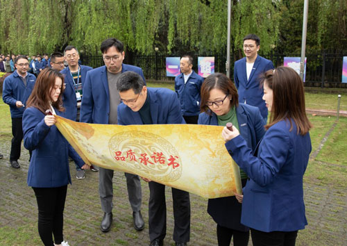 公司高階管理層在升旗儀式上帶頭簽署品質(zhì)承諾書,以此正式拉開了品質(zhì)月活動(dòng)的序幕。