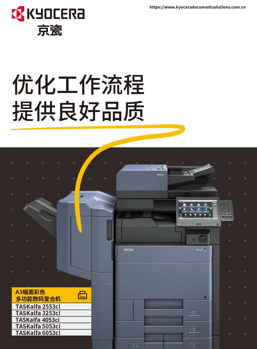 京瓷辦公信息系統(tǒng)(中國)有限公司主要負(fù)責(zé)彩色和黑白數(shù)碼復(fù)合機(jī)、彩色和黑白數(shù)碼激光打印機(jī)、生產(chǎn)型彩色噴墨印刷系統(tǒng)、辦公解決方案等系列辦公自動(dòng)化設(shè)備的銷售。京瓷辦公設(shè)備將一如既往延續(xù)ECOSYS理念,始終站在時(shí)代前沿,以科技服務(wù)社會(huì),堅(jiān)持開發(fā)更能滿足時(shí)代需求、更為綠色的新銳產(chǎn)品,使用戶都能夠從中獲得更大的利益。
