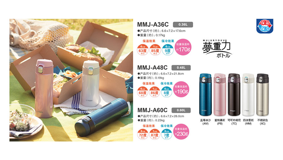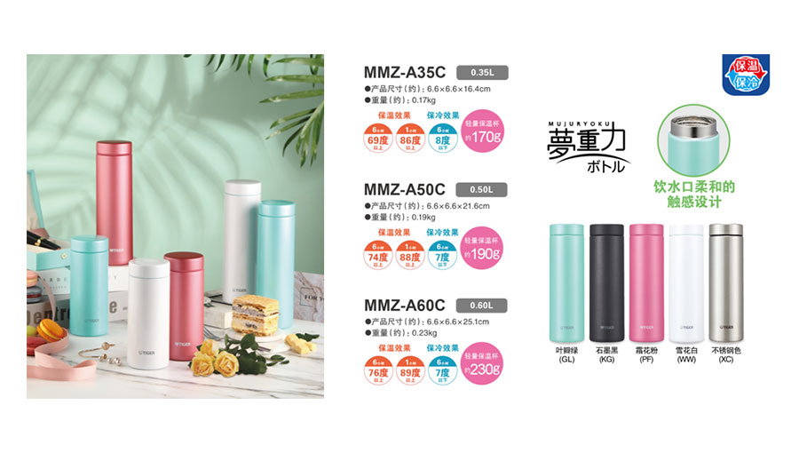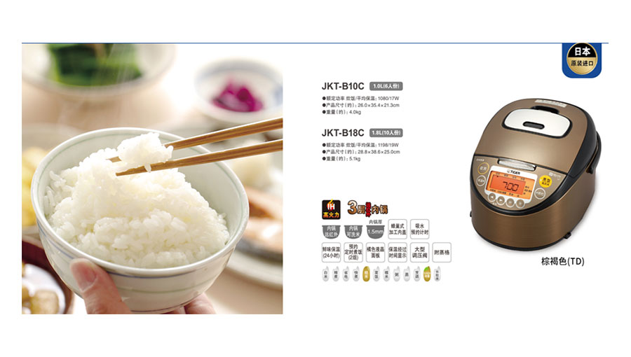 主要產(chǎn)品:TIGER虎牌電飯煲、電熱水瓶、保溫杯、保溫壺