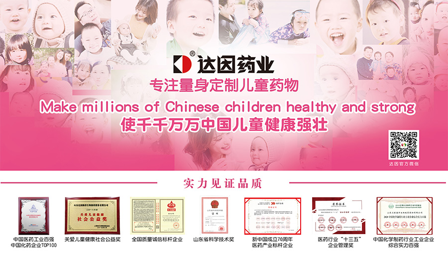 山東達(dá)因海洋生物制藥股份有限公司(簡(jiǎn)稱(chēng)達(dá)因藥業(yè)),是中國(guó)醫(yī)藥企業(yè)管理協(xié)會(huì)兒童用藥專(zhuān)業(yè)委員會(huì)主任委員單位,以“使千千萬(wàn)萬(wàn)中國(guó)兒童健康強(qiáng)壯”為使命,專(zhuān)注于兒童健康領(lǐng)域產(chǎn)品研發(fā)、生產(chǎn)和市場(chǎng)營(yíng)銷(xiāo),以專(zhuān)業(yè)和責(zé)任捍衛(wèi)兒童用藥安全,在兒科專(zhuān)業(yè)用藥領(lǐng)域取得了良好的口碑和覆蓋率,樹(shù)立了中國(guó)兒童用藥的旗幟地位。達(dá)因藥業(yè)產(chǎn)品線涉及兒童藥品、兒童保健食品和兒童營(yíng)養(yǎng)食品、兒童健康用品等領(lǐng)域,形成了以“兒童保健和治療”領(lǐng)域?yàn)楹诵牡膬和】诞a(chǎn)業(yè)布局。