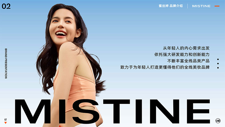 未來,MISTINE蜜絲婷將繼續(xù)以更創(chuàng)新的產(chǎn)品、更優(yōu)質(zhì)的服務(wù)、更多元的渠道,構(gòu)建品牌核心壁壘,繼續(xù)專注產(chǎn)品研發(fā)和創(chuàng)新,在致力于光老化研究的同時(shí)也將不斷拓展美妝新品類,持續(xù)為消費(fèi)者提供更高質(zhì)量的產(chǎn)品和服務(wù),成為全球美妝市場的領(lǐng)軍品牌!