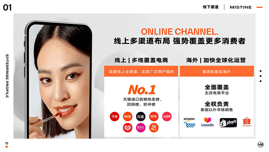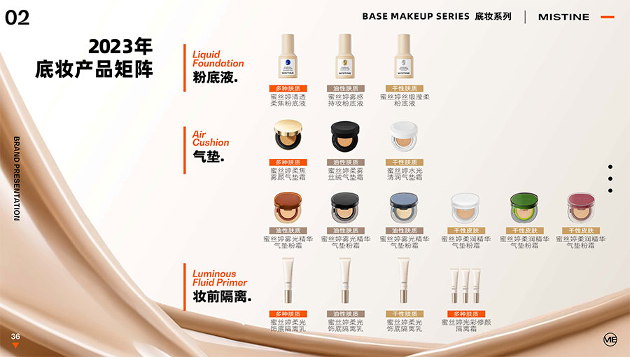 主要產(chǎn)品:MISTINE蜜絲婷防曬、美妝、底妝、彩妝、護(hù)膚、香水、個(gè)護(hù)等產(chǎn)品