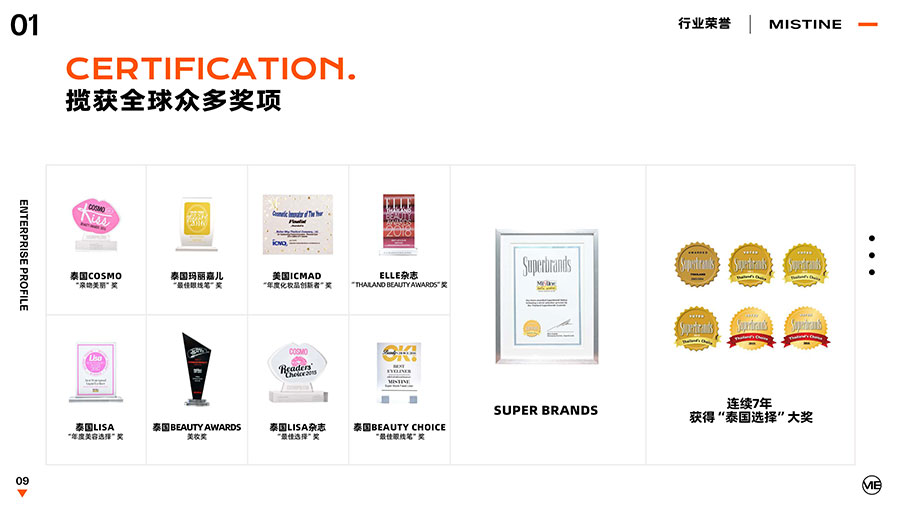 36年來,MISTINE蜜絲婷步履不停,堅(jiān)持從消費(fèi)者出發(fā),以優(yōu)質(zhì)專研產(chǎn)品、適時(shí)而動(dòng)的渠道策略和持續(xù)發(fā)力的品牌塑造,贏得眾多消費(fèi)者的喜愛和行業(yè)內(nèi)外的贊許。迄今,MISTINE蜜絲婷已連續(xù)七年攬獲“泰國選擇”大獎(jiǎng),同時(shí)先后榮獲中國化妝品大會(huì)藍(lán)玫獎(jiǎng)「2022年度競爭力品牌」、IQF國際品質(zhì)節(jié)暨消費(fèi)領(lǐng)導(dǎo)力峰會(huì)「杰出消費(fèi)影響力品牌」、CAQI中國質(zhì)量網(wǎng)「全國美妝行業(yè)質(zhì)量領(lǐng)先品牌」、天貓金妝獎(jiǎng)超級單品「年度防曬獎(jiǎng)」、凱度消費(fèi)者指數(shù)「極具成長力品牌」等榮譽(yù)。
