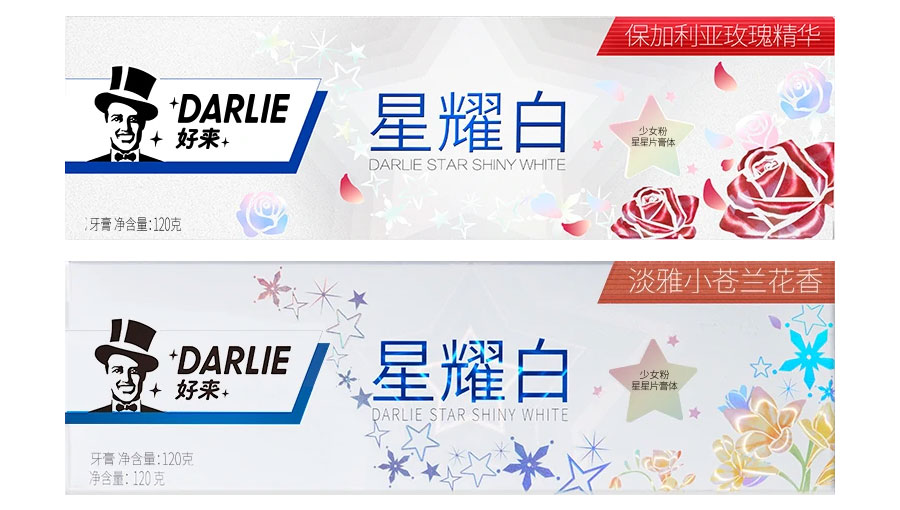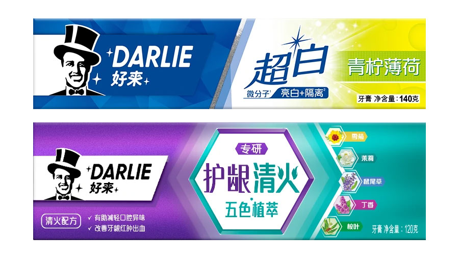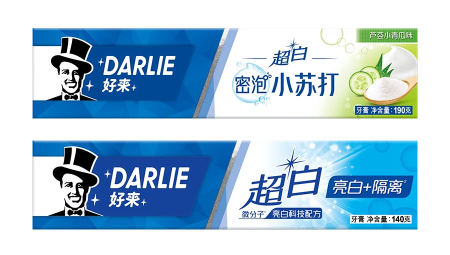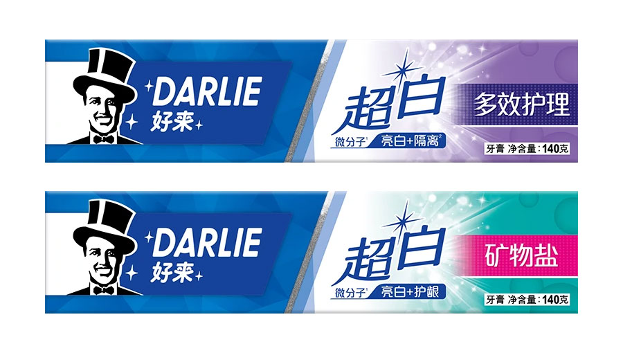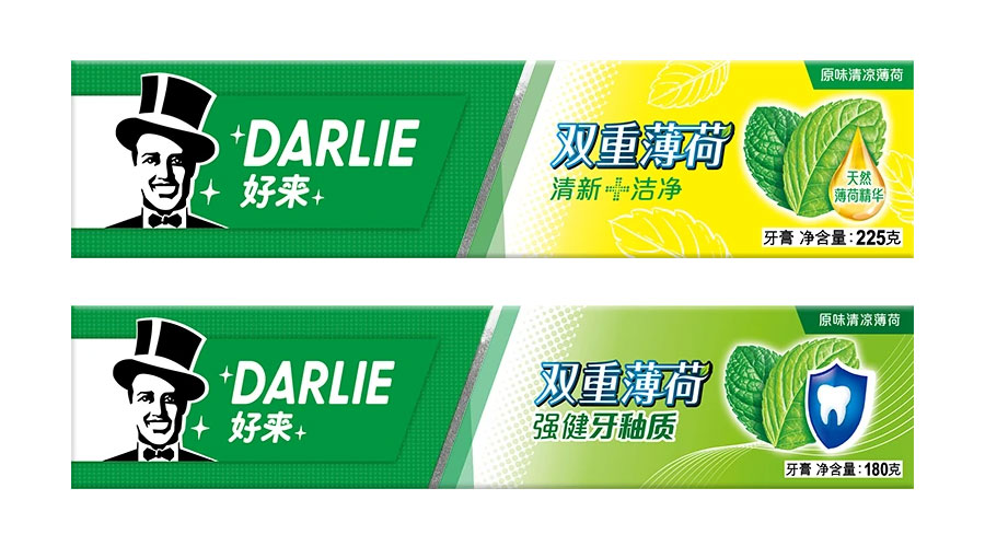 目前DARLIE好來牙膏共有數(shù)十個品種、多種規(guī)格(18g-250g),其中銷往中國大陸市場包括經(jīng)典的雙重薄荷系列、茶倍健系列、超白系列、專研護(hù)齦系列、抗敏感系列、透心爽系列,兒童牙膏系列及新增了白.酵素系列和星耀白系列等20個品種,另外還有多個品種同時銷往新加坡、馬來西亞、泰國、中國香港和中國臺灣等市場。