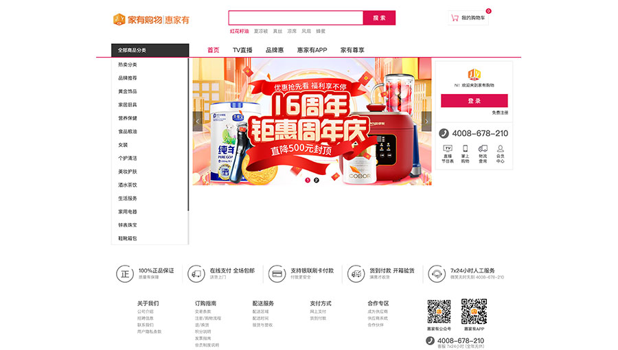 主要產(chǎn)品:家居用品、家用電器、服裝鞋帽、食品、美妝、珠寶首飾、收藏品、運(yùn)動(dòng)健康用品、家紡用品等產(chǎn)品