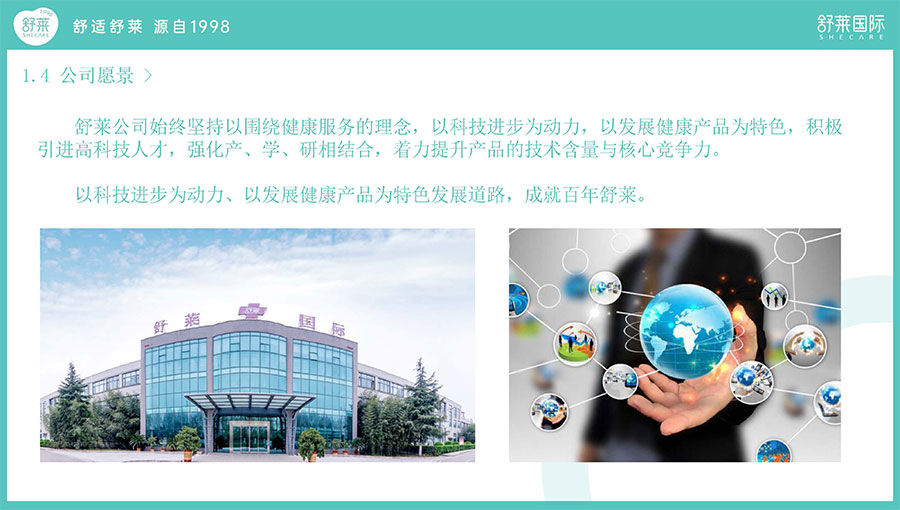 舒萊堅(jiān)持以科技進(jìn)步為動(dòng)力、以發(fā)展健康產(chǎn)品為特色發(fā)展道路,幾年來,技術(shù)中心先后與南京野生植物院、中國抗菌協(xié)會(huì)建立合作關(guān)系,走產(chǎn)學(xué)研結(jié)合之路,大力發(fā)展高科技產(chǎn)品。
