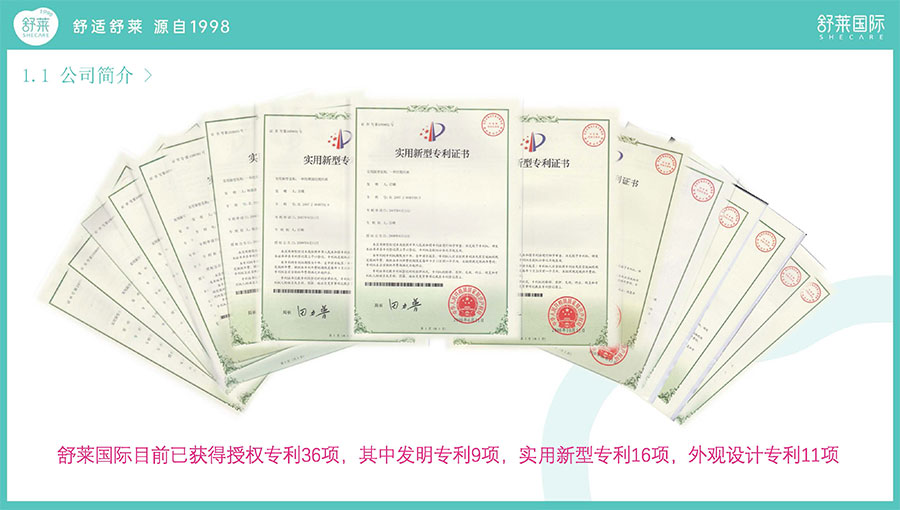 舒萊,一個(gè)女性朋友熟知的國貨品牌,26年來一直在襄城縣默默“發(fā)育”。目前舒萊公司擁有12條現(xiàn)代化全自動(dòng)生產(chǎn)線,不斷地通過產(chǎn)品研發(fā)和技術(shù)創(chuàng)新,取得了輝煌業(yè)績(jī)。截至2024年7月1日共有專利36個(gè),擁有9項(xiàng)發(fā)明專利,13項(xiàng)實(shí)用新型專利,10項(xiàng)外觀設(shè)計(jì)專利,衛(wèi)生巾年生產(chǎn)能力達(dá)66億片,被認(rèn)定為“國家級(jí)高新技術(shù)企業(yè)”“省級(jí)抗菌婦女衛(wèi)生用品工程技術(shù)研究中心”“中國女性衛(wèi)生用品行業(yè)十強(qiáng)企業(yè)”,已成為國內(nèi)衛(wèi)生巾生產(chǎn)領(lǐng)域領(lǐng)軍企業(yè)。