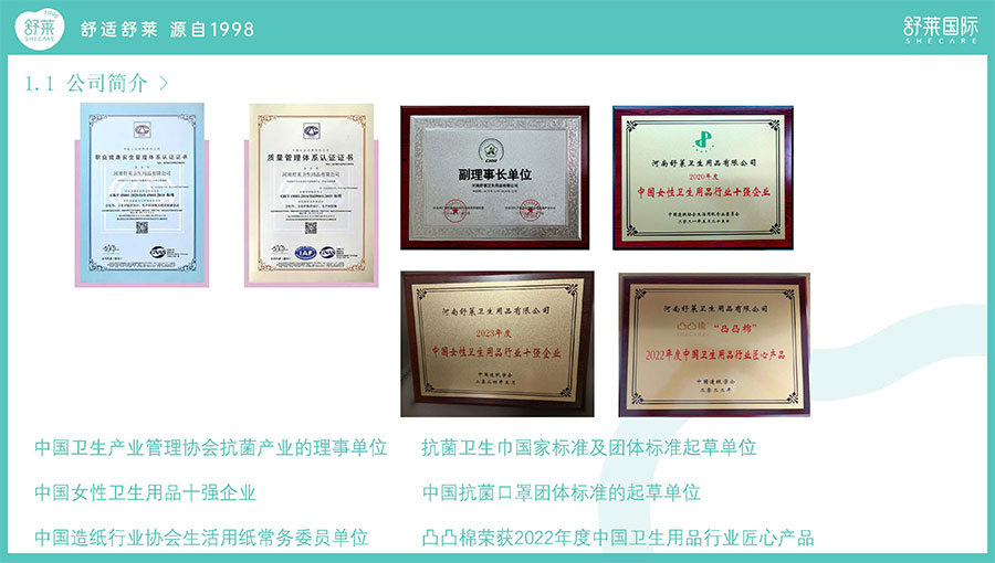 2022年,該公司“舒萊”、“凸凸棉”品牌被中國造紙學(xué)會(huì)評(píng)定為“2022年度中國衛(wèi)生用品行業(yè)匠心產(chǎn)品”;
