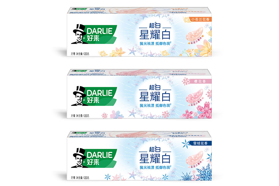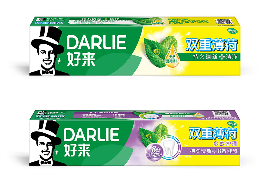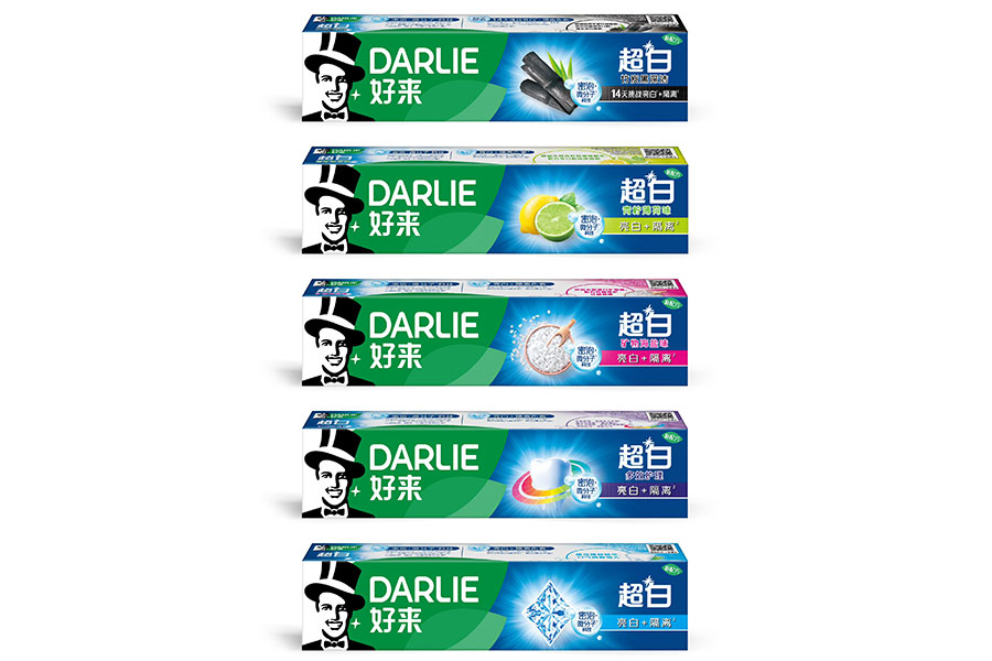 目前DARLIE好來牙膏共有數(shù)十個品種、多種規(guī)格(18g-250g),其中銷往中國大陸市場包括經(jīng)典的雙重薄荷系列、茶倍健系列、超白系列、專研護齦系列、抗敏感系列、透心爽系列,兒童牙膏系列及新增了白酵素系列和星耀白系列等20個品種,另外還有多個品種同時銷往新加坡、馬來西亞、泰國、中國香港和中國臺灣等市場。