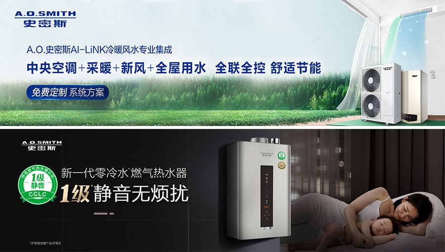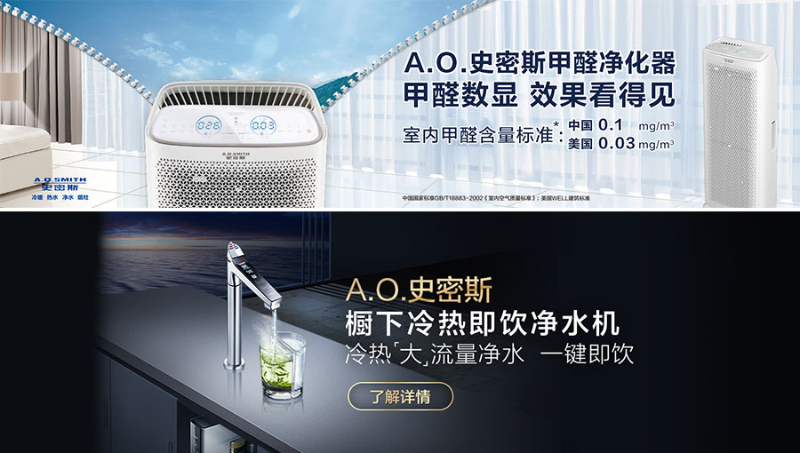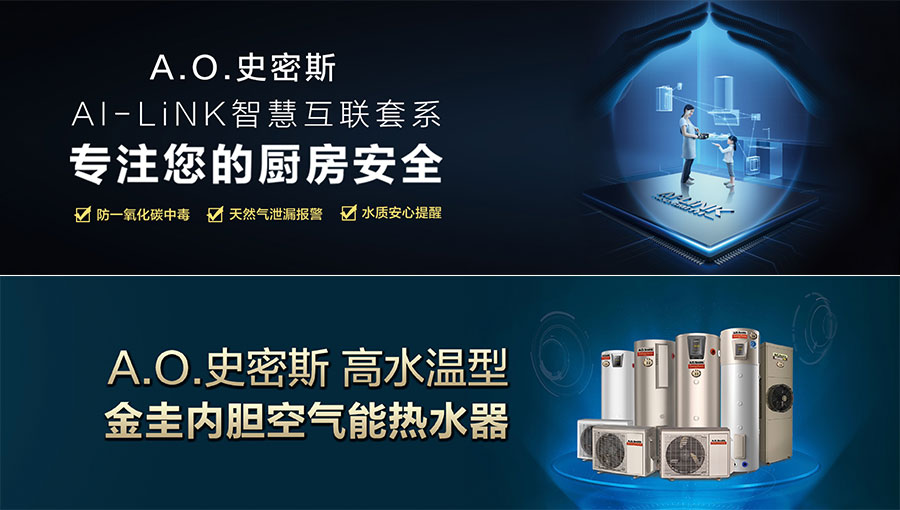 主要產(chǎn)品:A.O.史密斯電熱水器、燃?xì)鉄崴?、煙機(jī)灶具、熱水/采暖兩用爐、凈水機(jī)、空氣凈化器、空氣能熱水器、熱泵熱水器、智能配件等產(chǎn)品
