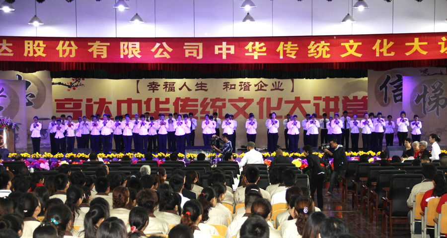 亨達(dá)股份在多年的企業(yè)發(fā)展中,逐步形成了以中華傳統(tǒng)文化育人、以西方科學(xué)管理做事的二元文化格局,將道德教育與現(xiàn)代管理有機(jī)融合,形成具有中國特色的企業(yè)文化。其自創(chuàng)業(yè)之初一脈相承的“家文化”更是將亨達(dá)股份“孝敬仁愛、誠實(shí)守信、文明禮儀”的企業(yè)精神精彩演繹。亨達(dá)“家文化”,其內(nèi)涵突出了一個“家”字,而“家”在中華傳統(tǒng)文化5000年文明傳承最小單位。亨達(dá)的“家文化”具有三個層次:員工幸福之家、企業(yè)和諧之家、祖國昌盛之家。建立在“家文化”基礎(chǔ)上的亨達(dá)企業(yè)文化,秉承的是具有中國特色的“人性化管理”。