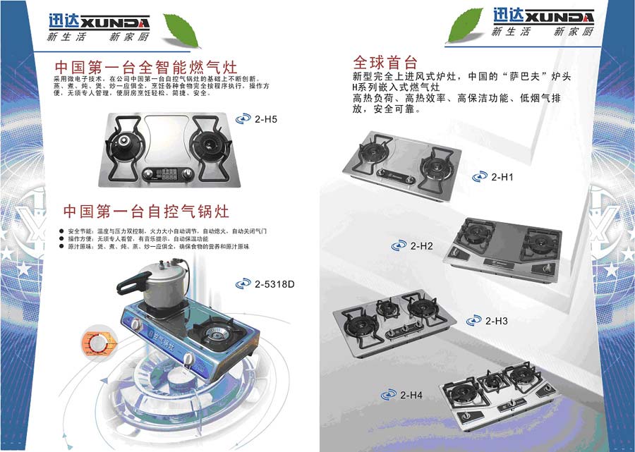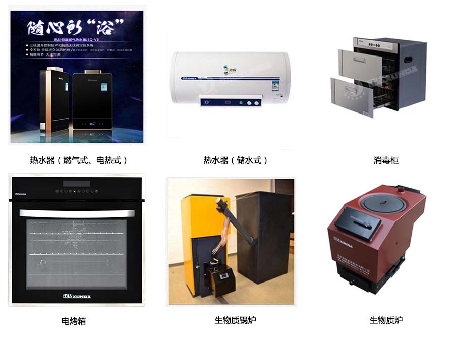 主要產(chǎn)品:迅達燃氣灶具、熱水器、吸油煙機