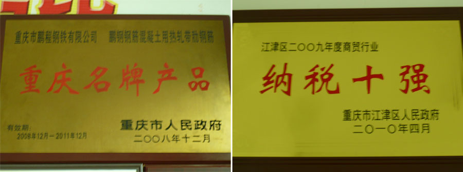 “鵬鋼牌”鋼筋混凝土用熱軋帶肋鋼筋采用了國際上流行的四位一體短流先進(jìn)生產(chǎn)工藝。2012年公司生產(chǎn)的熱軋帶肋鋼筋HRB400高強(qiáng)鋼筋取得生產(chǎn)許可證,被重慶市政府評為“重慶名牌”產(chǎn)品。“鵬鋼牌”鋼筋混凝土用熱軋帶肋鋼筋每年均受江津區(qū)質(zhì)量技術(shù)監(jiān)督局、重慶市質(zhì)量技術(shù)監(jiān)督局等部門的監(jiān)督抽查,合格率達(dá)100%。在全市同行中,“鵬鋼牌”鋼筋混凝土用熱軋帶肋鋼筋無論是產(chǎn)量、質(zhì)量、市場占有率在全市都名列第一。
