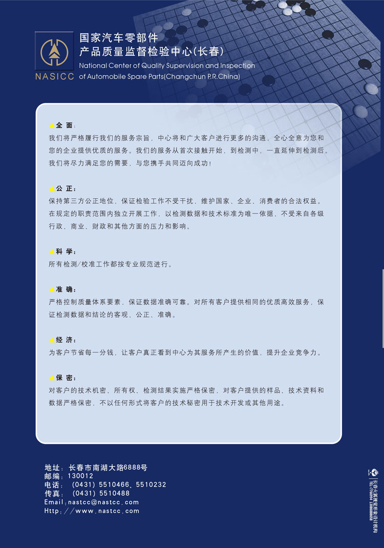 國家汽車零部件產(chǎn)品質(zhì)量監(jiān)督檢驗中心(長春)