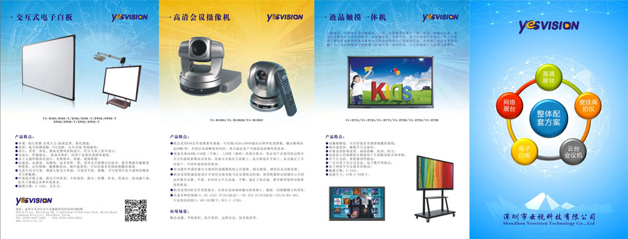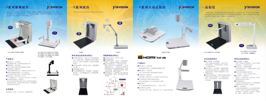 主要產(chǎn)品:云視牌高清實物展臺、高拍儀、交互式電子白板、智能終端一體機、高清攝像機、音箱