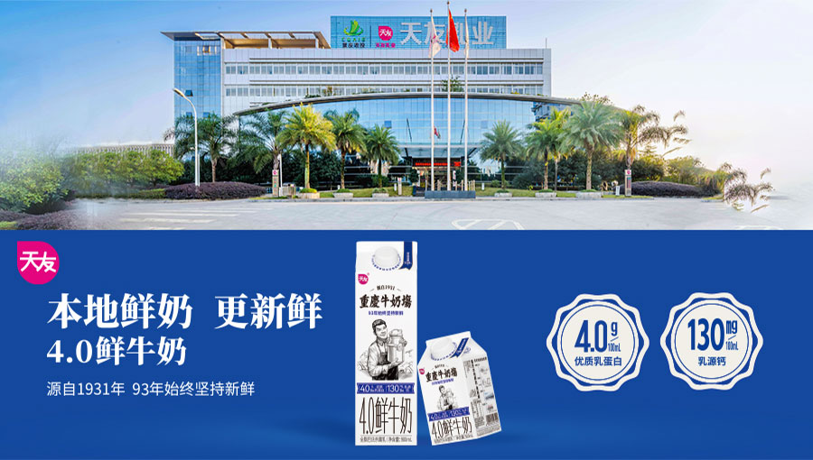 重慶市天友乳業(yè)股份有限公司始創(chuàng)于1931年,是一家具有94年歷史的專(zhuān)業(yè)乳制品全產(chǎn)業(yè)鏈企業(yè)。天友乳業(yè)以加工經(jīng)營(yíng)乳制品為主,下設(shè)三個(gè)大型乳品加工廠、天友牧業(yè)、銷(xiāo)售分公司、友生活物流公司、市級(jí)技術(shù)中心和四星級(jí)銀河大酒店。