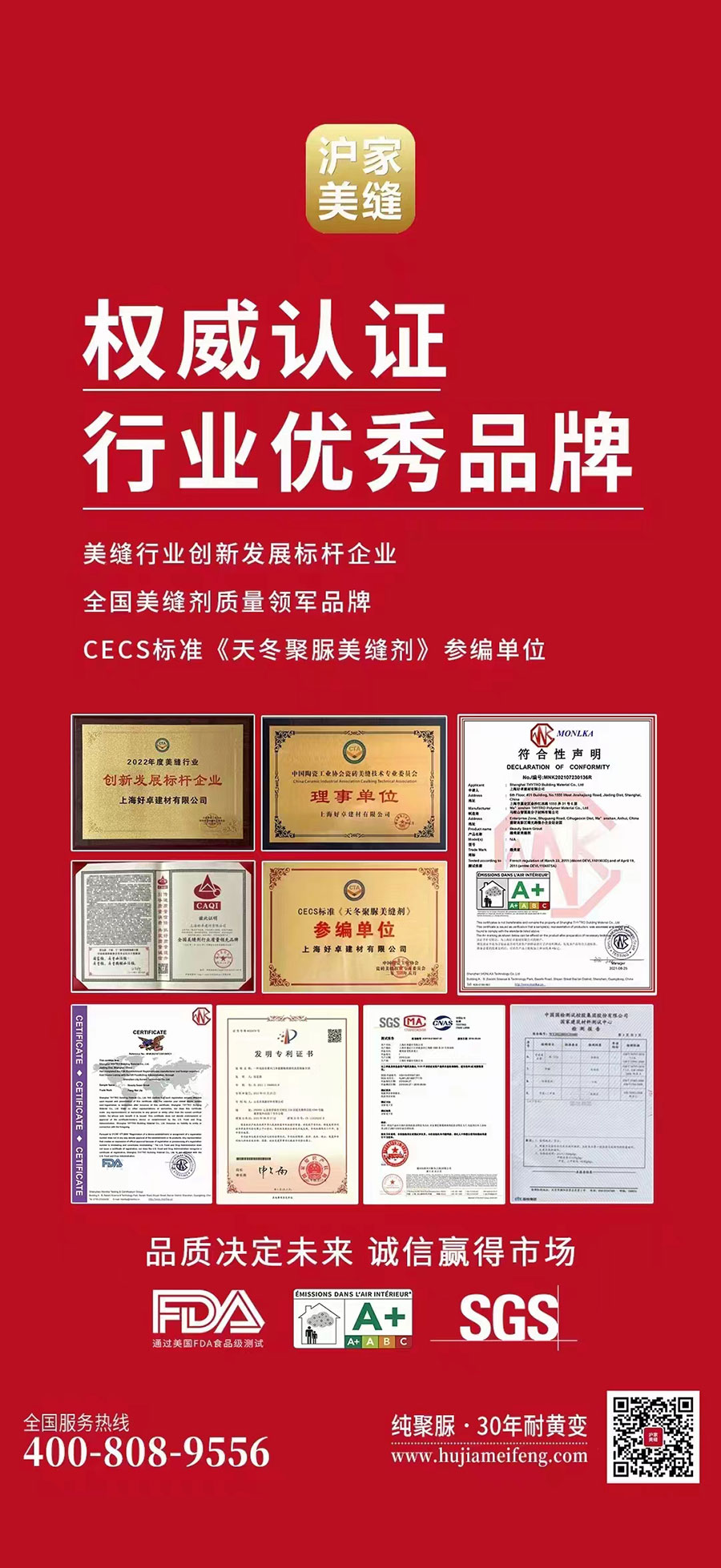 上海好卓建材有限公司是《中國陶瓷工業(yè)協(xié)會瓷磚美縫技術(shù)專業(yè)委員會理事單位》《全國美縫劑行業(yè)質(zhì)量領(lǐng)軍企業(yè)》《全國質(zhì)量誠信標桿企業(yè)》《CECS標準天冬聚脲美縫劑參編單位》。