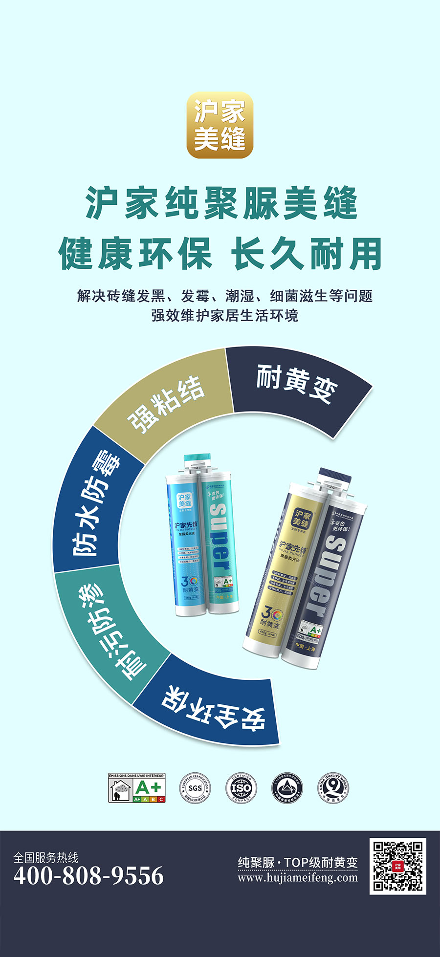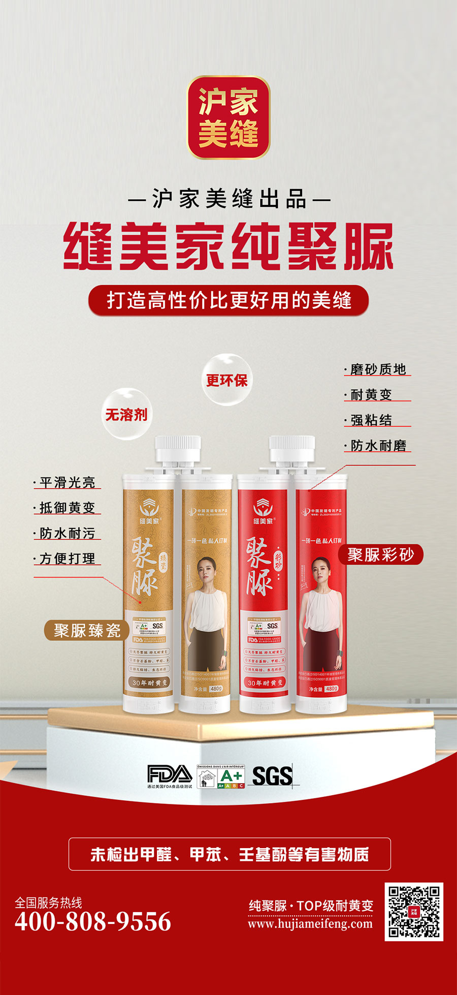 縫美家先后推出了單組份水性美縫劑,滿填王,雙組份柔性真瓷王,雙組份環(huán)氧樹脂類水瓷,水性環(huán)氧填縫劑等高科技新品,均由多種高分子聚合物和高檔顏料精制而成,覆蓋在瓷磚表面,可形成光滑如瓷的潔凈面,不僅有裝飾效果,更具有耐磨、強度高、防水、防油污,易施工清潔,從而解決瓷磚縫隙臟黑的難題。