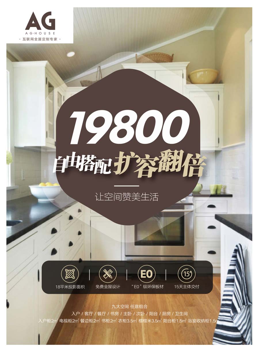 主要產(chǎn)品:AG·HOUSE櫥柜、衣柜、全屋定制、地板、木門等