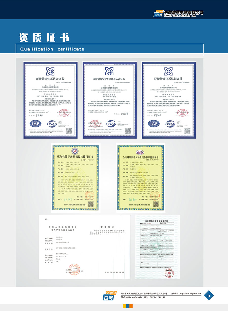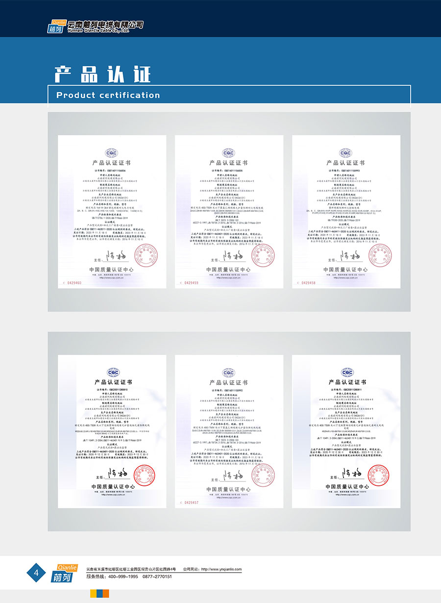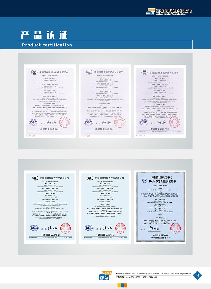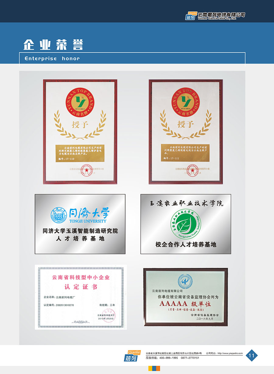 企業(yè)管理先進(jìn),設(shè)施完善,全部產(chǎn)品取得全國(guó)工業(yè)產(chǎn)品生產(chǎn)許可證證書,電線取得了中國(guó)強(qiáng)制性產(chǎn)品CCC認(rèn)證,同時(shí)取得了中國(guó)質(zhì)量認(rèn)證中心CQC產(chǎn)品自愿認(rèn)證、RoSH產(chǎn)品認(rèn)證。前列電纜通過了質(zhì)量管理體系認(rèn)證、環(huán)境管理體系認(rèn)證、職業(yè)健康安全管理體系認(rèn)證、能源管理體系認(rèn)證、兩化融合管理體系認(rèn)證、五星級(jí)售后服務(wù)管理體系認(rèn)證,產(chǎn)品抽檢合格率達(dá)100%。公司于2007年成立了企業(yè)技術(shù)中心,并于2010年被認(rèn)定為市級(jí)企業(yè)技術(shù)中心,同年被認(rèn)定為高新技術(shù)企業(yè),2014年被認(rèn)定為云南省創(chuàng)新型試點(diǎn)企業(yè),2015年被認(rèn)定為玉溪市電線電纜工程技術(shù)研究中心,2020年被認(rèn)定為云南省企業(yè)技術(shù)中心,2020年前列電纜“基于工業(yè)互聯(lián)網(wǎng)的電線電纜智能制造新模式應(yīng)用項(xiàng)目”被列為云南省工業(yè)互聯(lián)網(wǎng)試點(diǎn)示范項(xiàng)目,2021年被認(rèn)定為云南省專精特新小巨人企業(yè),2021年云南省工業(yè)互聯(lián)網(wǎng)“三化”改造試點(diǎn)示范項(xiàng)目,2022年被認(rèn)定為云南省綠色工廠、云南省工業(yè)產(chǎn)品質(zhì)量標(biāo)桿企業(yè)、云南省知識(shí)產(chǎn)權(quán)優(yōu)勢(shì)企業(yè)。“前列”牌電線電纜是云南名牌、云南省著名商標(biāo)、玉溪市民營(yíng)企業(yè)公益之星,多次獲得新產(chǎn)品、新技術(shù)金獎(jiǎng)、消費(fèi)者信得過產(chǎn)品、質(zhì)量服務(wù)3A企業(yè)等榮譽(yù)稱號(hào)。公司在2022年中國(guó)創(chuàng)新方法大賽全國(guó)總決賽當(dāng)中取得云南賽區(qū)一等獎(jiǎng),全國(guó)一等獎(jiǎng)。