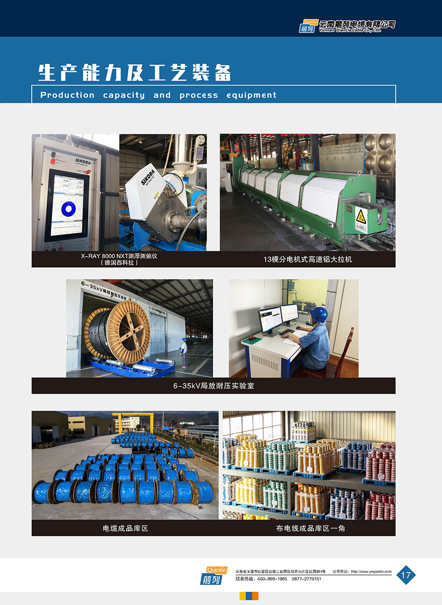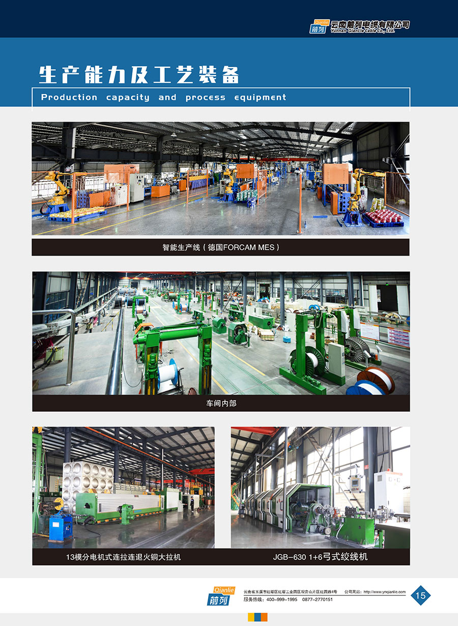 企業(yè)裝備有從國(guó)內(nèi)外引進(jìn)的制造及檢測(cè)設(shè)備,能按國(guó)家標(biāo)準(zhǔn)(GB)、國(guó)際電工委員會(huì)標(biāo)準(zhǔn)(IEC)及其它工業(yè)國(guó)家先進(jìn)標(biāo)準(zhǔn)生產(chǎn)各種類型的優(yōu)質(zhì)電線電纜產(chǎn)品。