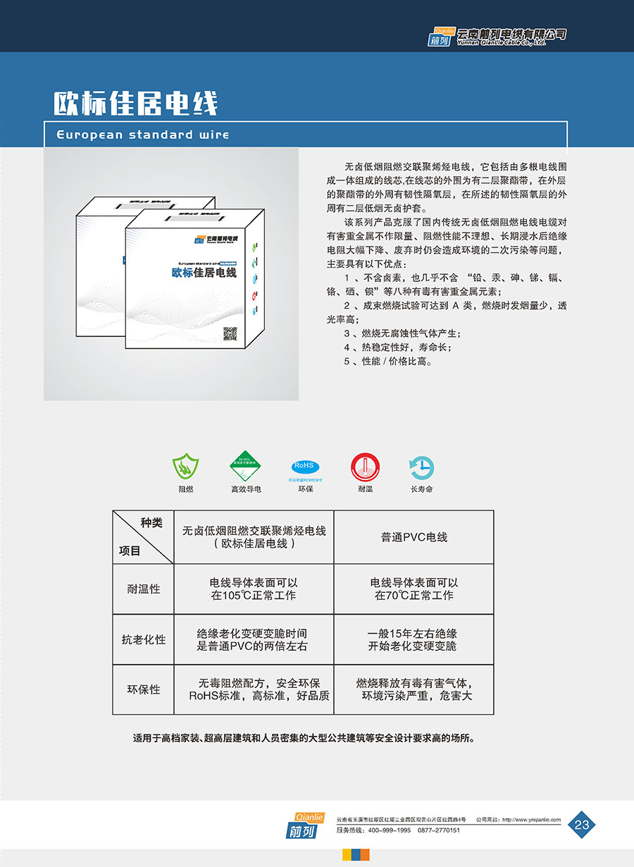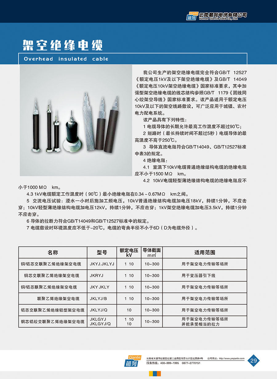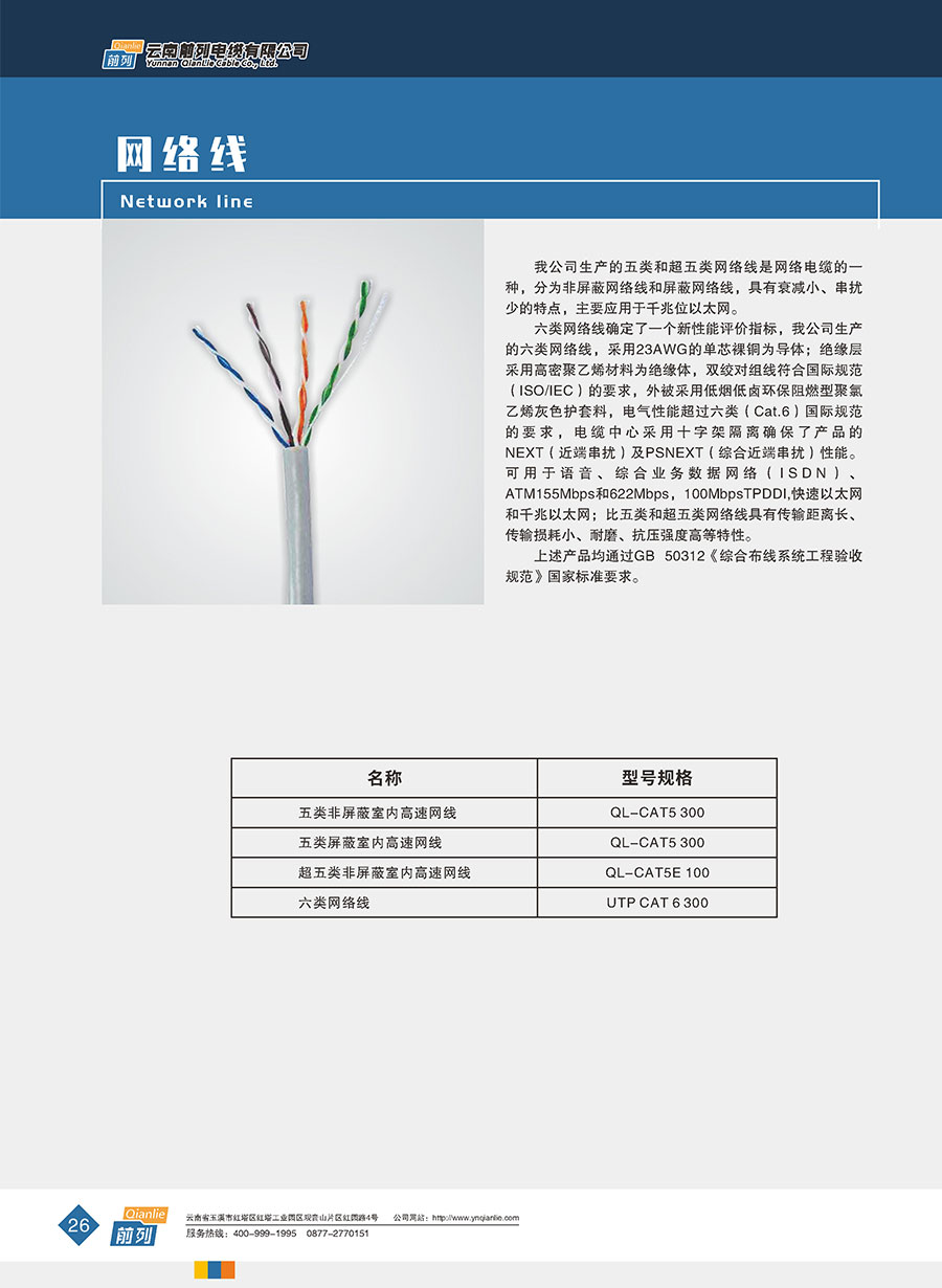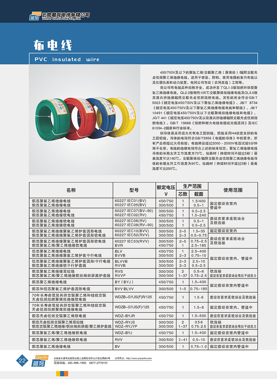 企業(yè)產(chǎn)品有裸銅/鋁絞線、鋼芯鋁絞線、1-35kV交聯(lián)聚乙烯絕緣電力電纜、0.6/1kV聚氯乙烯絕緣電力電纜、聚氯乙烯和交聯(lián)聚乙烯絕緣控制電纜、高端家裝線、防火電纜以及各種特種高溫低煙無鹵型耐火阻燃型電線電纜。