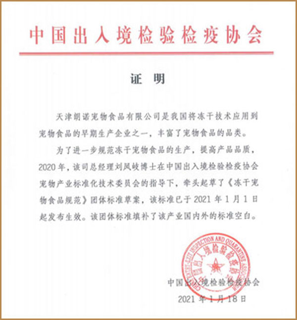 不僅在產(chǎn)品本身實現(xiàn)突破,2021年1月1日,在中國出入境檢驗檢疫協(xié)會寵物產(chǎn)業(yè)標(biāo)準(zhǔn)化技術(shù)委員會指導(dǎo)下,由朗諾董事長劉鳳岐博士領(lǐng)銜起草的《凍干寵物食品規(guī)范》正式頒布并實施。身為十三年出口企業(yè),朗諾相信,通過不斷完善的行業(yè)標(biāo)準(zhǔn),越來越多真正優(yōu)秀的國內(nèi)品牌將更易獲得認同,中國寵物食品行業(yè)也將勢如破竹、蒸蒸日上。期待不久將來中國民族企業(yè)將全線崛起,以嶄新的面貌立于全球市場的潮流之中。