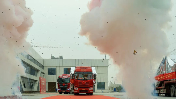 4月6日下午13點(diǎn)38分,隨著兩排禮炮沖天而起,一排滿載電梯的卡車緩緩駛出通用電梯未來工廠的大門,通用電梯向蘇州地鐵8號(hào)線交付的首批電/扶梯正式發(fā)運(yùn)。