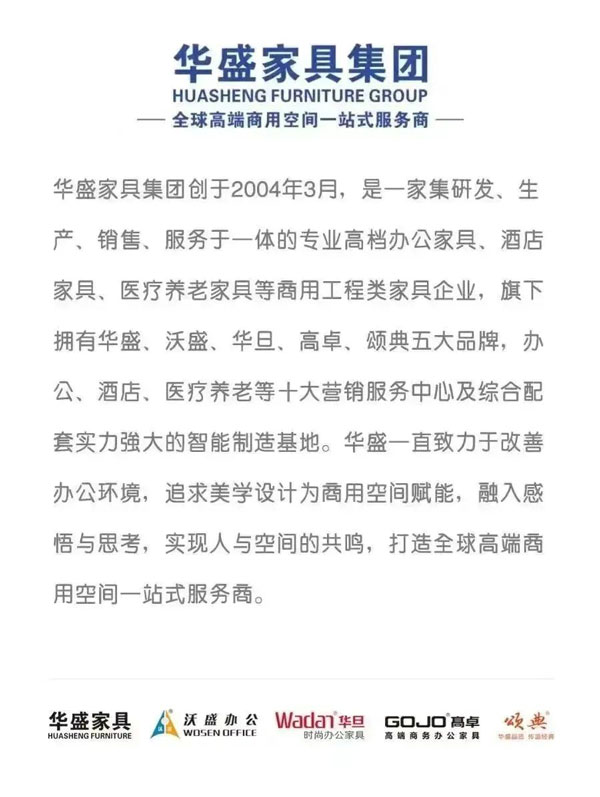 作為在“中國辦公家具重鎮(zhèn)”成長起來的龍頭企業(yè)以及中山市辦公家具行業(yè)協(xié)會會長單位,華盛希望向整個(gè)辦公家具產(chǎn)業(yè)和消費(fèi)市場傳遞華盛穩(wěn)實(shí)、積極進(jìn)取、值得信任和信賴的平臺型、服務(wù)型的企業(yè)形象,從而團(tuán)結(jié)全市辦公家具行業(yè)力量,借力全國乃至全球資源,助力中山市“中國辦公家具重鎮(zhèn)”建設(shè),助推中國辦公家具產(chǎn)業(yè)高質(zhì)量發(fā)展,擴(kuò)大區(qū)域知名度和行業(yè)影響力,讓辦公家具企業(yè)得以更好更快的發(fā)展,同時(shí)積極籌劃中山打造“中國商用家具之都”!