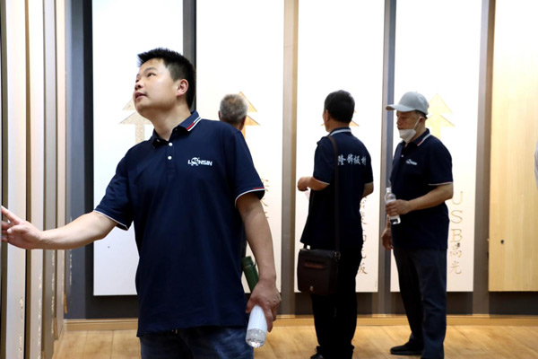 在隆飾精品展廳中,大家興趣十足,依次欣賞著不同系列板材產(chǎn)品所打造的定制家具效果,讓大家更直觀地了解隆飾板材,增加經(jīng)營(yíng)信心,讓經(jīng)銷商對(duì)隆飾產(chǎn)品更加具有信心!