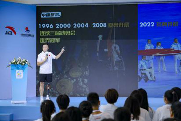 繼2022年安踏希望班研學(xué)營(yíng)舉辦“強(qiáng)國(guó)有我青年說(shuō)”直播活動(dòng)后,“時(shí)代新青年最強(qiáng)音”作為2023年安踏希望班研學(xué)營(yíng)的重磅活動(dòng)于8月11日上午舉行,并進(jìn)行了全網(wǎng)直播。安踏集團(tuán)副總裁李玲、中國(guó)青少年發(fā)展基金會(huì)秘書(shū)長(zhǎng)萬(wàn)學(xué)軍出席了活動(dòng)。三屆殘奧會(huì)金牌得主、中國(guó)殘奧委員會(huì)副主席侯斌也應(yīng)邀來(lái)到現(xiàn)場(chǎng),與同學(xué)們面對(duì)面交流,分享勵(lì)志故事,激勵(lì)學(xué)生們?cè)O(shè)立目標(biāo)、拓寬眼界、無(wú)所畏懼、勇攀高峰。他鼓勵(lì)同學(xué)們時(shí)談到“人生不設(shè)限,要面對(duì)自己的目標(biāo),相信相信的力量,努力到極致就可以實(shí)現(xiàn)它!”