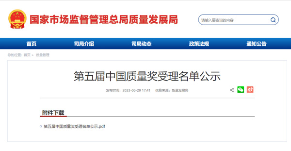 6月29日,市場監(jiān)管總局質(zhì)量發(fā)展局公示了第五屆中國質(zhì)量獎受理名單,共有 541 家組織和 73 名個人入圍。