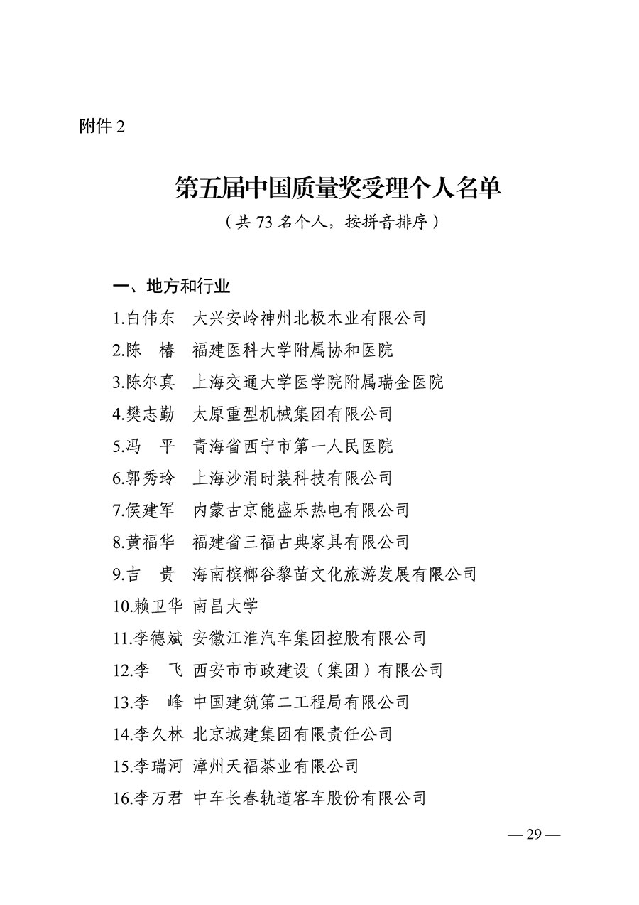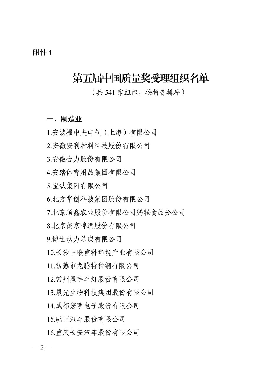 第五屆中國質(zhì)量獎受理名單公示(附全名單)