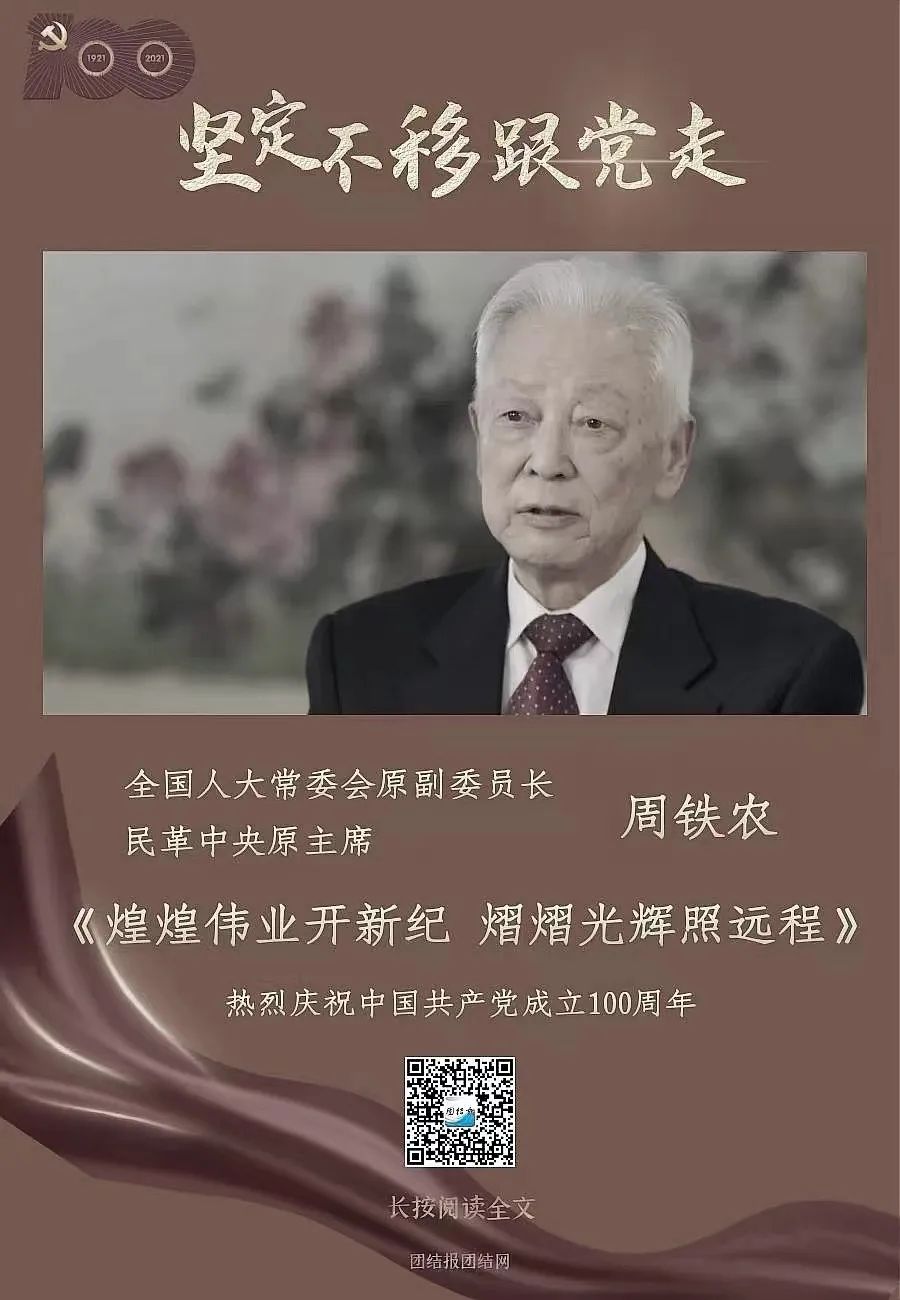 此時(shí)此刻,我們深切緬懷周鐵農(nóng)主席!“團(tuán)結(jié)報(bào)團(tuán)結(jié)網(wǎng)”特別刊發(fā)周鐵農(nóng)晚年接受本報(bào)記者專訪的文章《煌煌偉業(yè)開新紀(jì) 熠熠光輝照遠(yuǎn)程——專訪民革中央原主席周鐵農(nóng) 》(首發(fā)于2021年6月29日),以表達(dá)我們的深切悼念和緬懷敬仰之情。