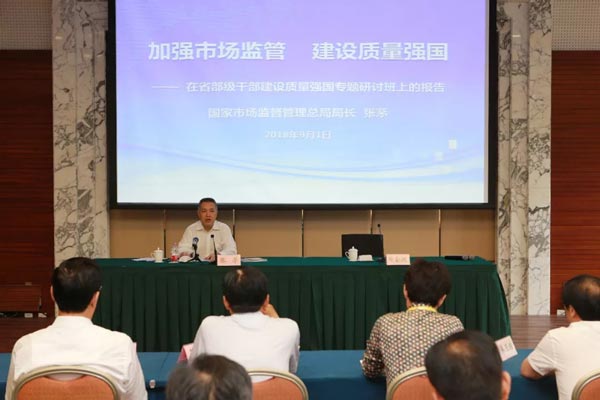 在我國第40個全國“質量月”到來之際,9月1日,由中共中央組織部、中國浦東干部學院和國家市場監(jiān)督管理總局共同舉辦的“省部級干部建設質量強國專題研討班”在滬開班,這也是繼兩年前在京舉辦首個省部級干部“全面實施質量強國戰(zhàn)略專題研討班”之后的第二個省部級質量強國戰(zhàn)略專題研討班。市場監(jiān)管總局局長、黨組副書記張茅作為首位授課人,在專題研討班上以“加強市場監(jiān)管 建設質量強國”為題做了專題講座。
